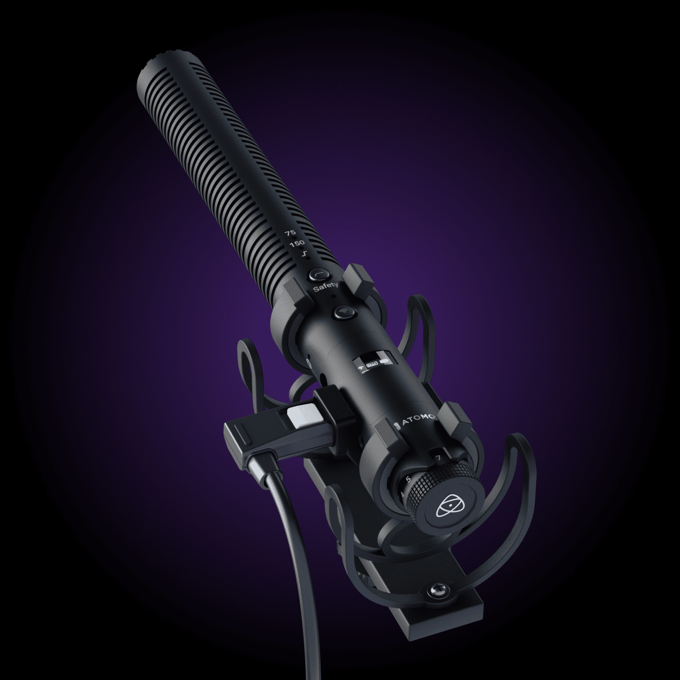Professional-grade wireless/wired shotgun microphone with locking USB-C and full broadcast feature set.
