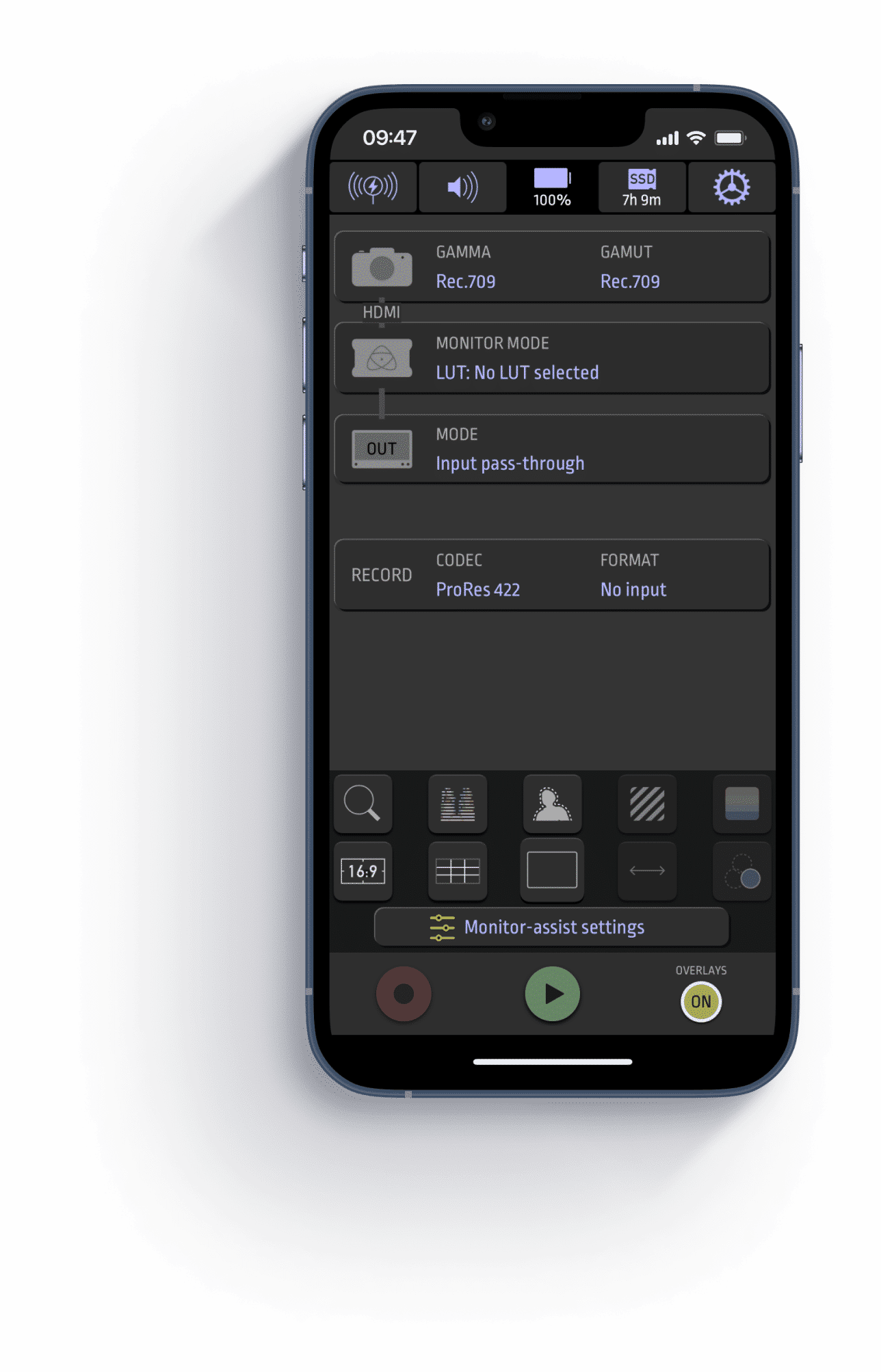 The AtomRemote App for IOS and macOS is a control panel for Atomos Connect. It gives you touchscreen control over configuration and operations as far as 15 meters away from Connect via Bluetooth LE. You can also select inputs, Gamma/EOTF and adjust Gamut settings.