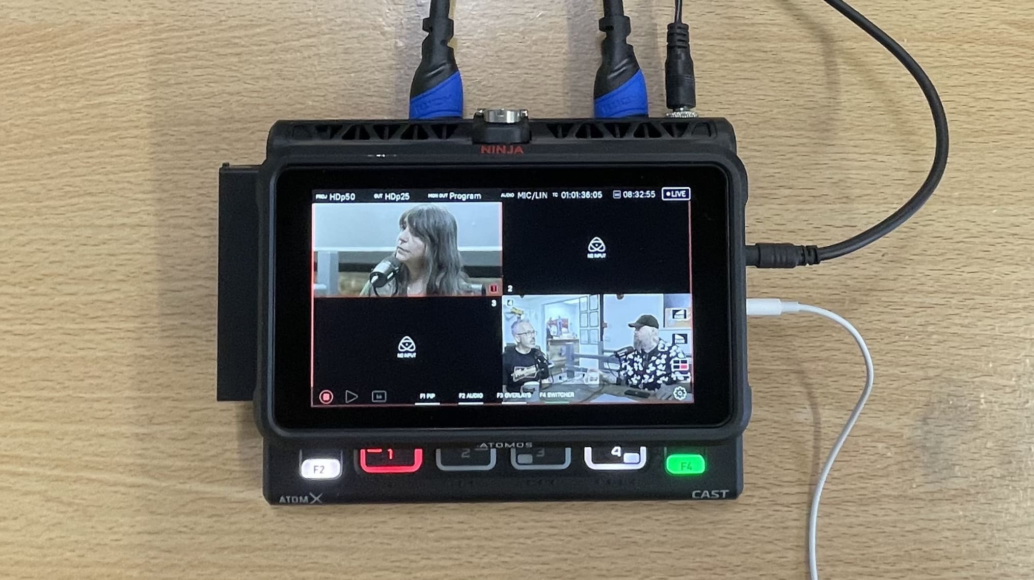 However, it wasn’t until he introduced the Atomos AtomX Cast – an accessory which converts the Ninja into a portable multi-camera switcher – that he noticed a considerable difference in the edit. “When I started the podcasts, there was a greater need to use two cameras. I needed to find a way to help streamline the editing process and it became apparent that a switcher was the way to go. I came across the AtomX Cast, and because it was a simple plug and play setup, I swiftly incorporated it into my workflow,” he says.