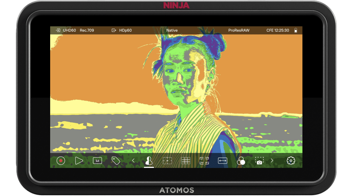 All Ninja monitor-recorders support EL Zone, a professional false color exposure tool that helps you see exactly how bright or dark different parts of your image are. Unlike traditional false color systems that use rough IRE ranges, EL Zone assigns specific colors to exact exposure values—based on stops of light, in the same way your camera sees exposure. It’s a precise and consistent way to expose your image correctly every time.
