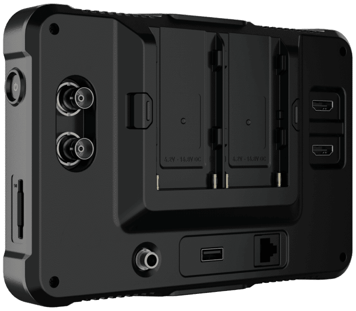 With dual battery slots you can easily hot-swap batteries during your shoot and never be caught without power. The Shinobi was designed from the ground up to optimize battery usage while monitoring, as the dual slots combine to allow you to run all day. The dedicated locking DC jack input allows you to connect to mains power on-set, and can be used with the optional DC to DTAP cable with V-lock batteries to power the Shinobi 7 in the field.